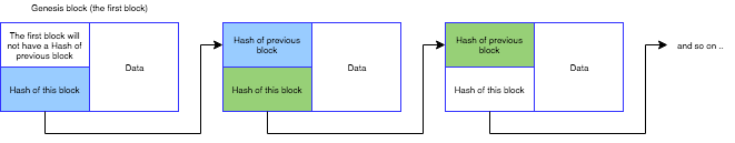 The technology is quite complicated but here is what happens in a simplified form. In the blockchain, a block consists of the data, hash of the previous block and hash of the current block. So when the data (or the hash of the previous block) in a block changes, the hash of that block would change, which would need the hash in the following block to change as well … and so on. All following blocks need to be updated if one block in the chain is updated.